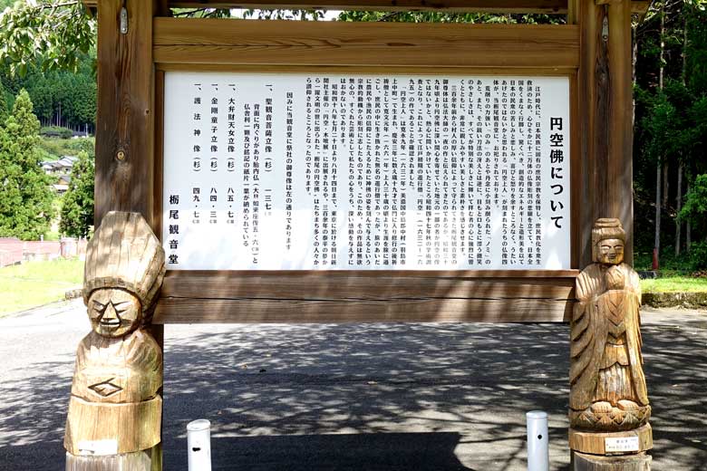 栃尾観音堂には「円空」の作である聖観音菩薩立像・大弁財天天女立像・金剛童子立像・護法神像が地元の人の手によって大切に祀られています。円空は江戸時代初期の僧で、各地を遍歴し木仏を彫り残しています。大峯にも修行に訪れ、天川村にはその際に彫られた神像・仏像が16体残されています。